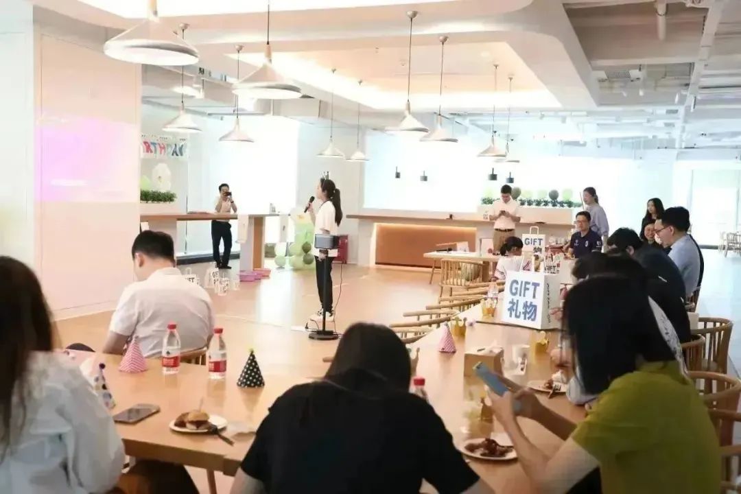 生日會(huì)上,暖場(chǎng)歌曲表演、聽聲辨人等游戲節(jié)目輪番上演。在愉悅的氛圍感染下,大家打開了話匣子,暫時(shí)卸下了工作的疲憊與壓力,現(xiàn)場(chǎng)其樂融融,一派歡聲笑語(yǔ)。生日會(huì)的尾聲,在主持人的邀請(qǐng)下,所有壽星一起走到臺(tái)前切蛋糕,在舒緩生日快樂歌的圍繞下,許下自己美好的生日愿望。