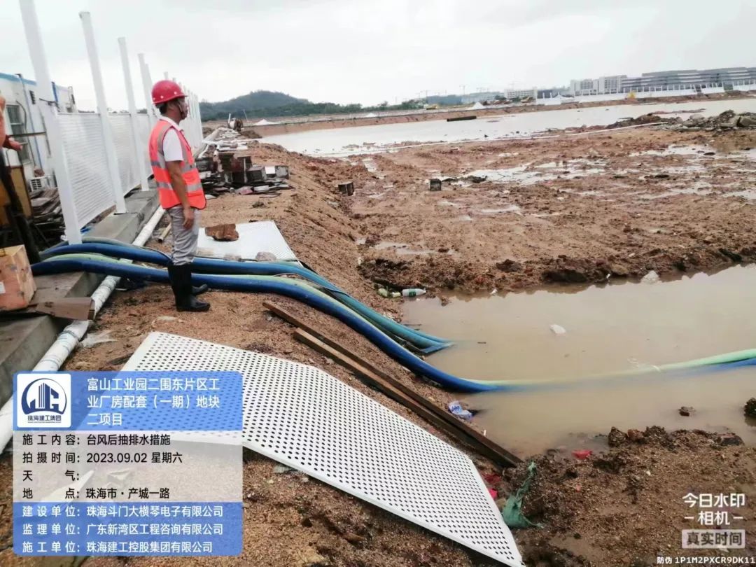 在斗門(mén)大橫琴5.0產(chǎn)業(yè)新空間萬(wàn)鋰新材料(一期)項(xiàng)目現(xiàn)場(chǎng),開(kāi)展了臺(tái)風(fēng)后復(fù)工復(fù)產(chǎn)安全大檢查,現(xiàn)場(chǎng)組織排水、圍擋修復(fù)各項(xiàng)工作。