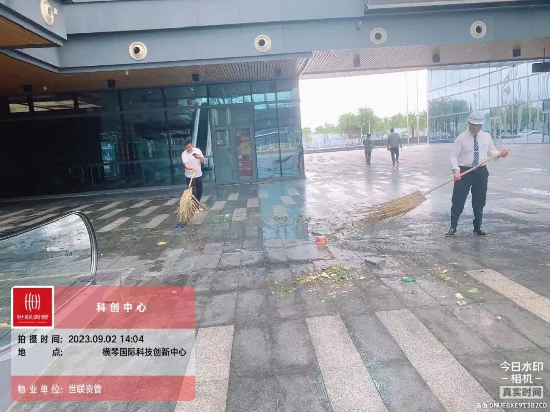 第一時(shí)間對(duì)園區(qū)環(huán)境進(jìn)行清障復(fù)原,完成園區(qū)所有枯樹(shù)樹(shù)葉清理、樹(shù)木扶正,樹(shù)撐檢查加固;完成園區(qū)公共垃圾桶、煙灰柱、地毯復(fù)原工作;檢查受災(zāi)情況并進(jìn)行修復(fù),檢查設(shè)備機(jī)房、電梯是否正常運(yùn)行等,確保企業(yè)可正常辦公。其中橫琴國(guó)際科創(chuàng)中心園區(qū)應(yīng)急避難場(chǎng)所本次接待人員約1500人次,產(chǎn)生生活垃圾約3噸,人員撤離后已及時(shí)清理。