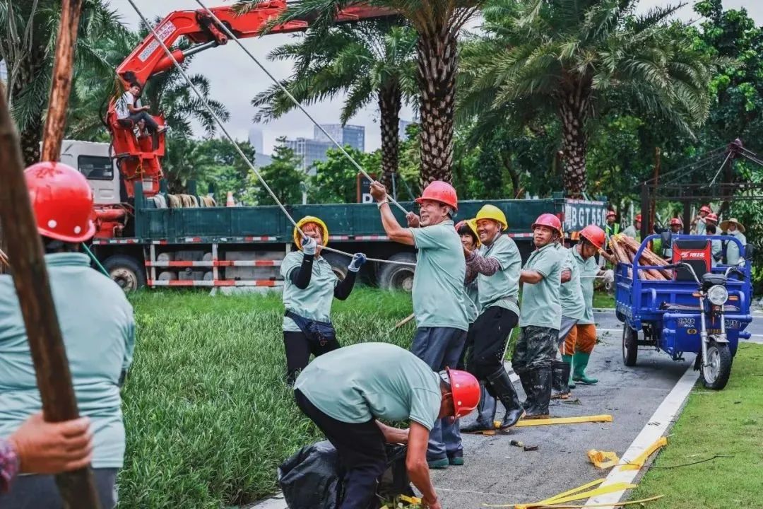 大橫琴琴建公司第一時(shí)間組織人員開(kāi)展搶險(xiǎn)工作。包括對(duì)建筑物進(jìn)行全面檢查,確保建筑物結(jié)構(gòu)安全。同時(shí),集中力量對(duì)各項(xiàng)目受損樹(shù)木進(jìn)行修復(fù)和清理,利用工具和機(jī)械設(shè)備積極清理影響道路、橋梁正常通行的傾倒樹(shù)木和雜物,針對(duì)重點(diǎn)區(qū)域迅速制定方案,盡快恢復(fù)正常的生產(chǎn)生活秩序。