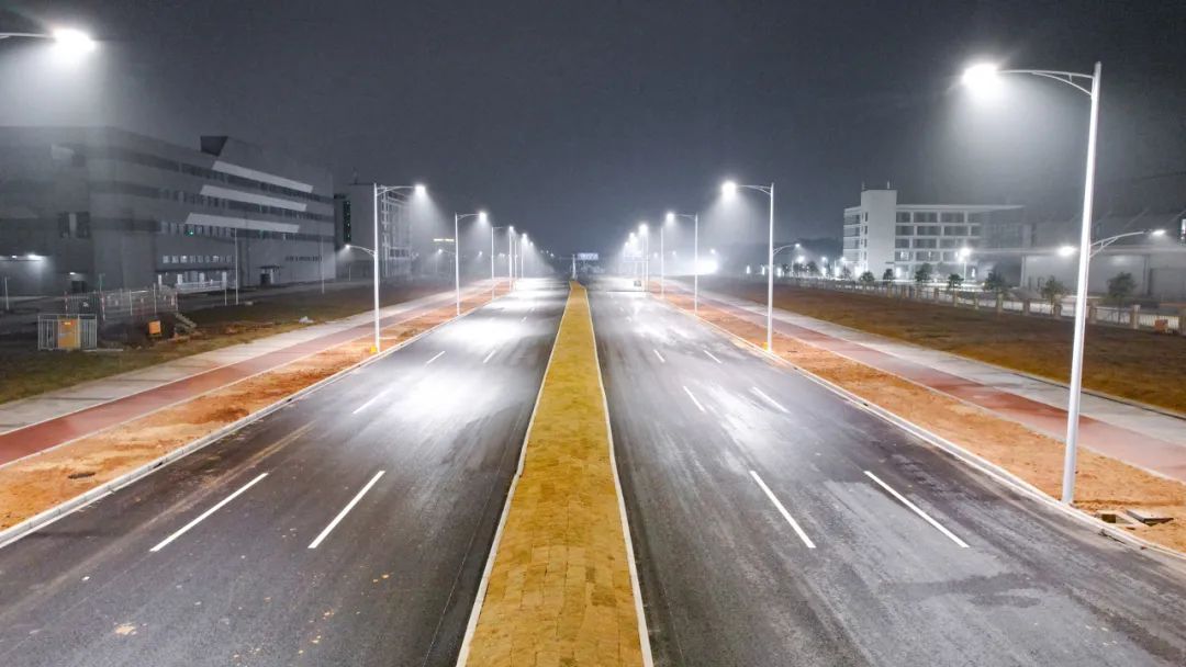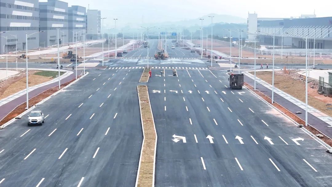 2024年1月30日,雷蛛大道中段、欣港路東西、馬山北路東西、中心西路及濱港路北段等約6公里道路按預定計劃建成通車,富山工業(yè)園二圍北片區(qū)初步形成“一大環(huán)、兩小環(huán)”交通路網,基本滿足片區(qū)內各廠區(qū)出行需求。