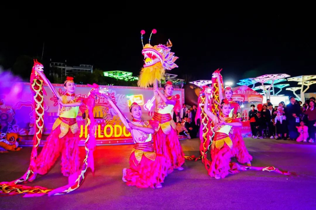 歡慶甲辰龍年元宵佳節(jié)的橫琴星樂度·露營(yíng)小鎮(zhèn),絢麗燈光流光溢彩,以傳統(tǒng)文化和沉浸式光影場(chǎng)景打造一個(gè)“不夜城”。