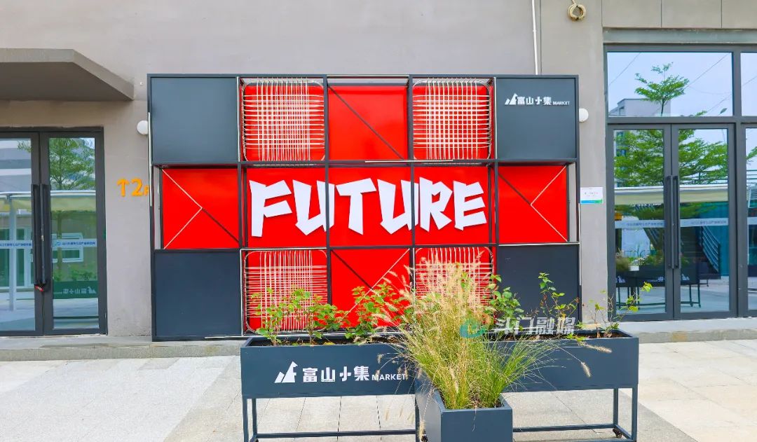 小斗現(xiàn)場看到,富山小集標志性大門已經(jīng)落成,巧妙融合了現(xiàn)代工業(yè)風(fēng)與時尚元素。