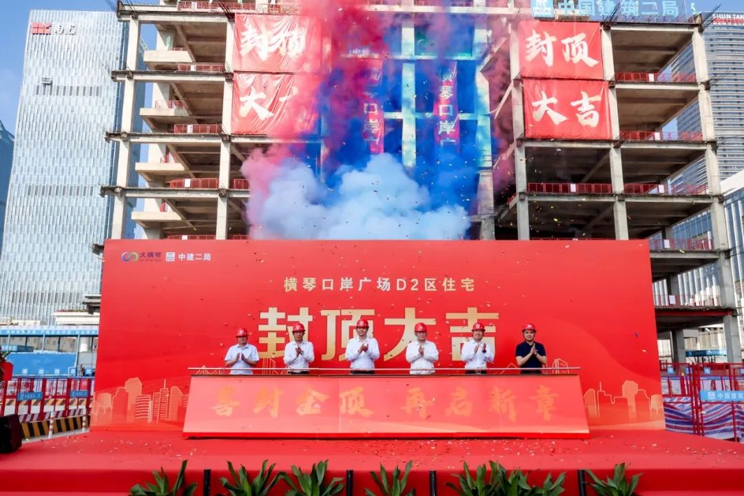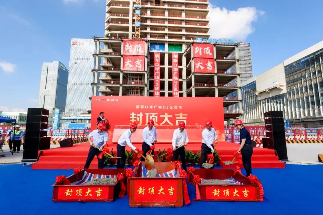 9月27日上午,由珠海大橫琴集團(tuán)有限公司(以下簡稱大橫琴集團(tuán))下屬企業(yè)珠海大橫琴口岸實(shí)業(yè)有限公司建設(shè)的橫琴口岸D2區(qū)住宅主體結(jié)構(gòu)順利封頂。大橫琴集團(tuán)黨委副書記、董事、總經(jīng)理王宇聲,中建二局華南公司黨委書記、董事長曲紅波,大橫琴集團(tuán)總經(jīng)理助理呂海濤等領(lǐng)導(dǎo)嘉賓出席儀式,各參建單位代表及項(xiàng)目一線職工共計(jì)100余人參加活動。