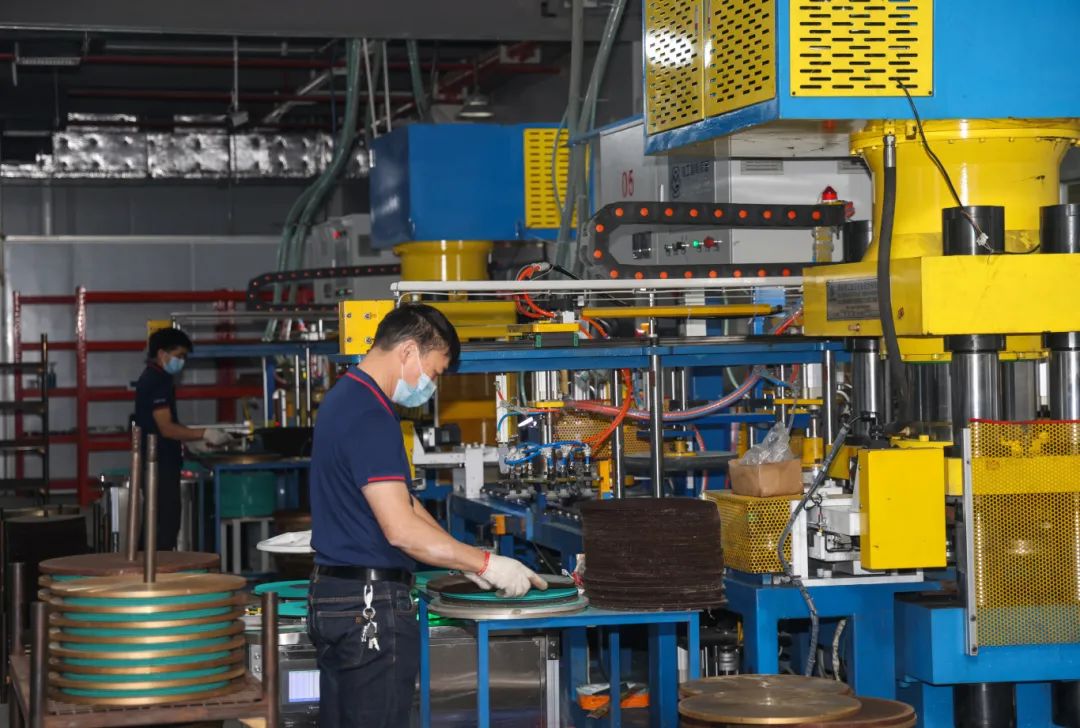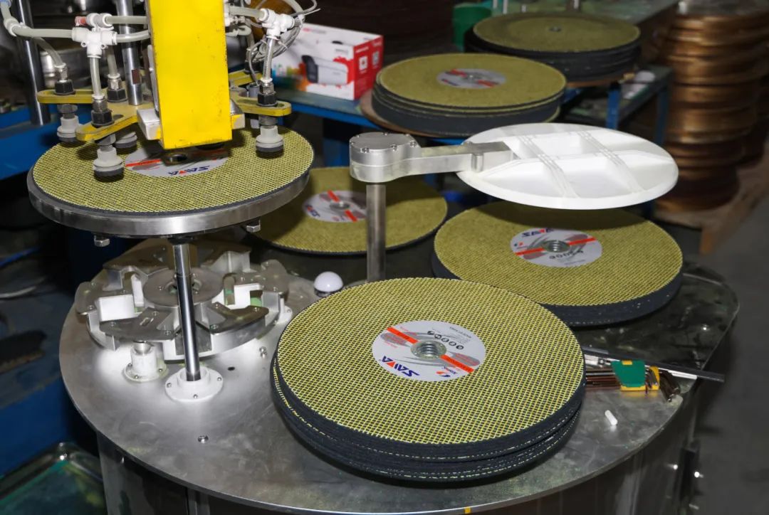 步入車間,智能化設(shè)備高效運(yùn)轉(zhuǎn),厚度1至6毫米的砂輪經(jīng)過精密加工后整齊排列,即將發(fā)往全球市場(chǎng)。