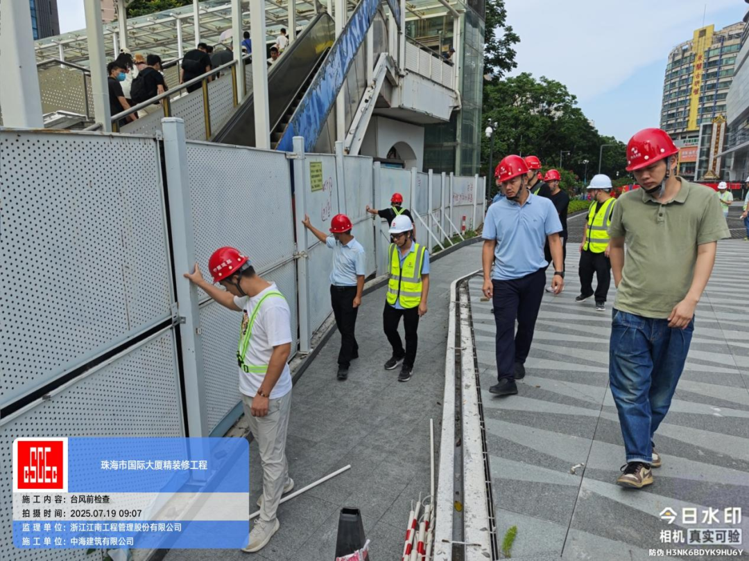 為切實(shí)做好臺(tái)風(fēng)“韋帕”防御工作,及時(shí)排查并消除項(xiàng)目各類(lèi)安全隱患,7月19日,珠光國(guó)際大廈組織開(kāi)展安全檢查工作,對(duì)項(xiàng)目施工現(xiàn)場(chǎng)的臨時(shí)用電設(shè)施、施工電梯等大型機(jī)械設(shè)備及工地材料堆放規(guī)范性等情況進(jìn)行了全面的安全隱患排查,確保項(xiàng)目排水系統(tǒng)暢通無(wú)阻、設(shè)施設(shè)備穩(wěn)固可靠,確保在臺(tái)風(fēng)來(lái)臨前將所有安全隱患消除到位。