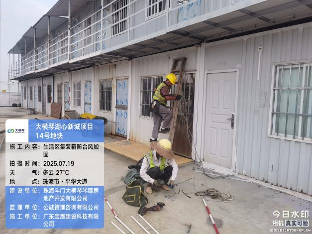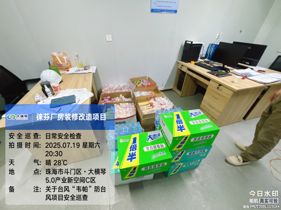 大橫琴置業(yè)公司提前統(tǒng)計(jì)各建設(shè)項(xiàng)目的臨險(xiǎn)人員數(shù)量,提前踏勘轉(zhuǎn)移安置場(chǎng)所。7月19日16點(diǎn),組織所有項(xiàng)目避險(xiǎn)人員在18點(diǎn)前全部迅速轉(zhuǎn)移、不漏一人。在建項(xiàng)目臨險(xiǎn)人員約4286人,各項(xiàng)目落實(shí)了應(yīng)急轉(zhuǎn)移安置場(chǎng)所,充分準(zhǔn)備了物資、食品運(yùn)輸?shù)礁黜?xiàng)目避難場(chǎng)所,組織大巴車(chē)接送工人,反復(fù)檢查確保項(xiàng)目施工現(xiàn)場(chǎng)、工人板房宿舍無(wú)一人留滯,應(yīng)急轉(zhuǎn)移場(chǎng)所里安排了值班值守維持秩序,禁止私自外出。