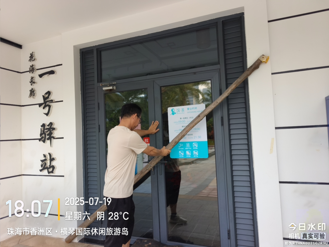大橫琴泛旅游公司對(duì)星樂(lè)度·露營(yíng)小鎮(zhèn)、芒州濕地公園、天湖酒店、天沐酒店、驛站等項(xiàng)目進(jìn)行巡查,將園區(qū)外圍門(mén)窗、遮陽(yáng)傘、垃圾桶等進(jìn)行加固或回收,檢查各區(qū)域易發(fā)生進(jìn)水地點(diǎn)并用防汛沙袋封堵。安全轉(zhuǎn)移并妥善安置在建項(xiàng)目、運(yùn)營(yíng)項(xiàng)目人員,將住宿員工往星旅酒店進(jìn)行轉(zhuǎn)移,做好公司防臺(tái)值班巡查搶險(xiǎn)人員安排,組織246人應(yīng)對(duì)搶險(xiǎn)工作。