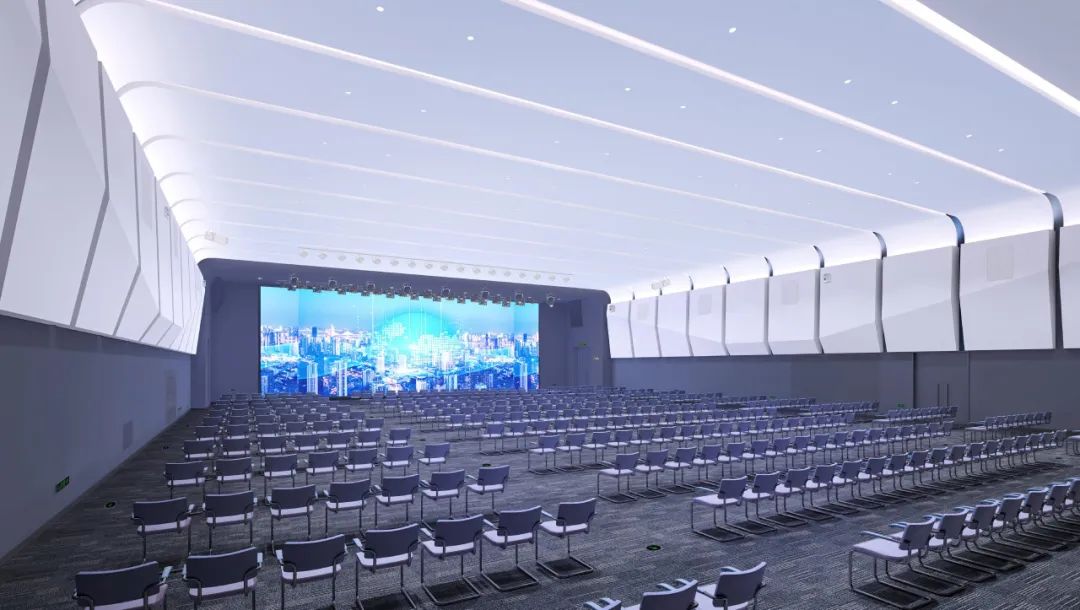 創(chuàng)新中心如山巒般扎根大地,約2萬(wàn)平方米的15層空間內(nèi),實(shí)驗(yàn)室集群與共享辦公區(qū)交織;科技交流中心則似懸浮的寶石——?jiǎng)討B(tài)金屬遮陽(yáng)面紗包裹著近萬(wàn)平方米的會(huì)議空間,其898平方米無(wú)柱宴會(huì)廳與468座階梯報(bào)告廳,成為珠江西岸規(guī)模最大的技術(shù)路演平臺(tái)。當(dāng)車輛經(jīng)廣珠西線駛?cè)霗M琴,這座折射天光的建筑將成為人們對(duì)橫琴科學(xué)城的第一印象。