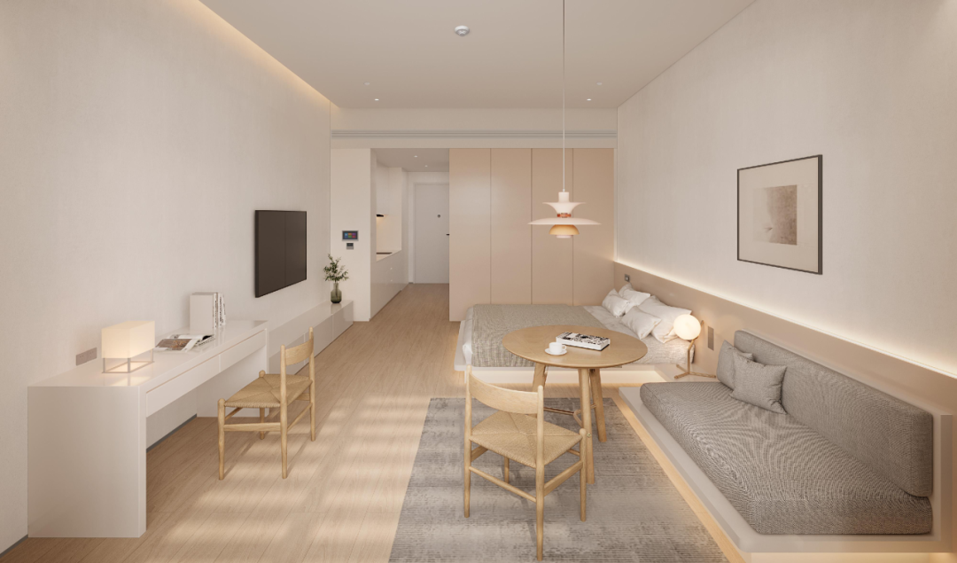 不遠(yuǎn)處的專家公寓則流淌著東方的靜謐詩(shī)意。日本建筑學(xué)會(huì)前會(huì)長(zhǎng)仙田滿院士以幾何哲學(xué)解構(gòu)三角地塊:階梯狀基座銜接城市道路,垂直塔樓上升至百米高空。138套公寓從37平方米單房到207平方米頂層豪宅,均配備泳池與會(huì)所。退臺(tái)式的立面構(gòu)成,使每位歸家的科研精英都能在窗前遇見(jiàn)不同的風(fēng)景——這是珠光集團(tuán)對(duì)人居關(guān)懷的立體詮釋。