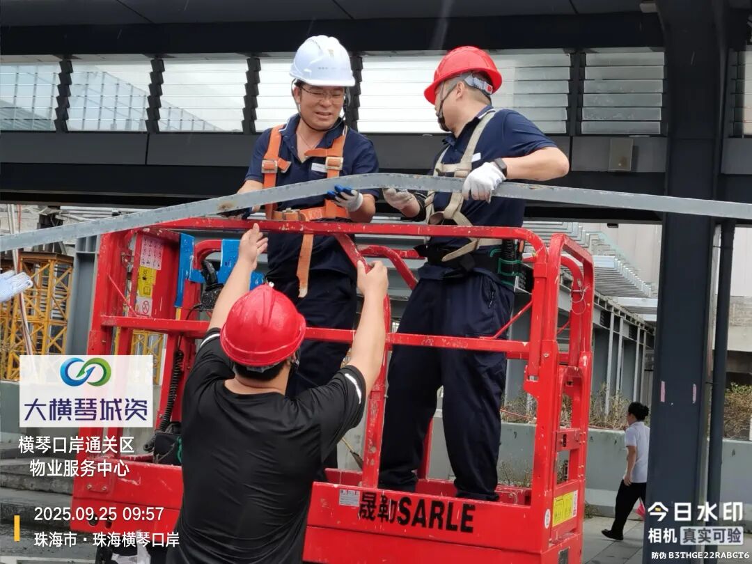 9月24日,根據(jù)上級有關(guān)部門的通知,17:30起,橫琴口岸客車通道及隨車人員驗放廳恢復(fù)通關(guān)服務(wù);23時起,橫琴口岸全面恢復(fù)通關(guān)服務(wù)。為盡快恢復(fù)生產(chǎn)通關(guān)秩序,珠光集團累計出動過千人次,爭分奪秒開展災(zāi)后清障、秩序維護(hù)、環(huán)境清潔、設(shè)備檢查和搶修等工作,清潔面積近10萬平方米,恢復(fù)鐵馬、水馬以及室外垃圾桶等設(shè)施1900余個,成功保障口岸通關(guān)服務(wù)如期恢復(fù)。