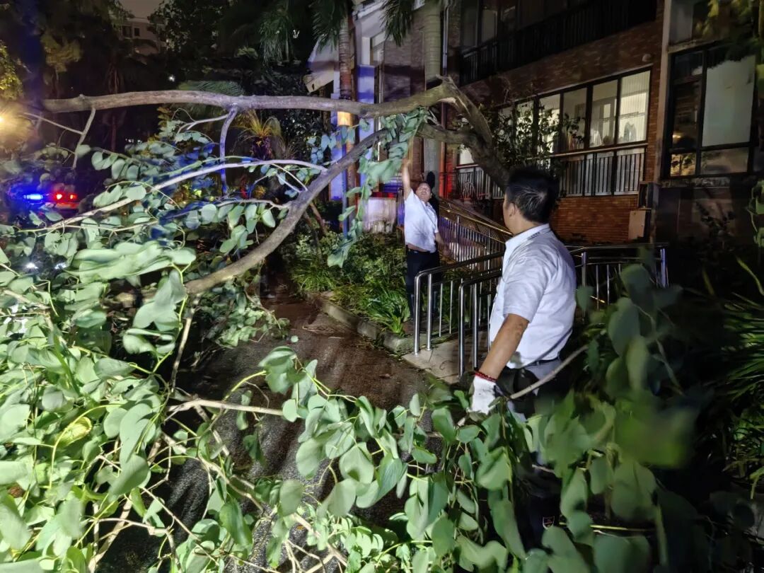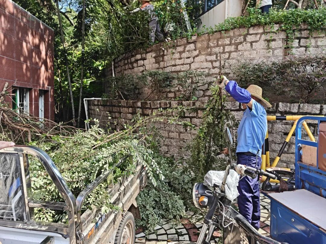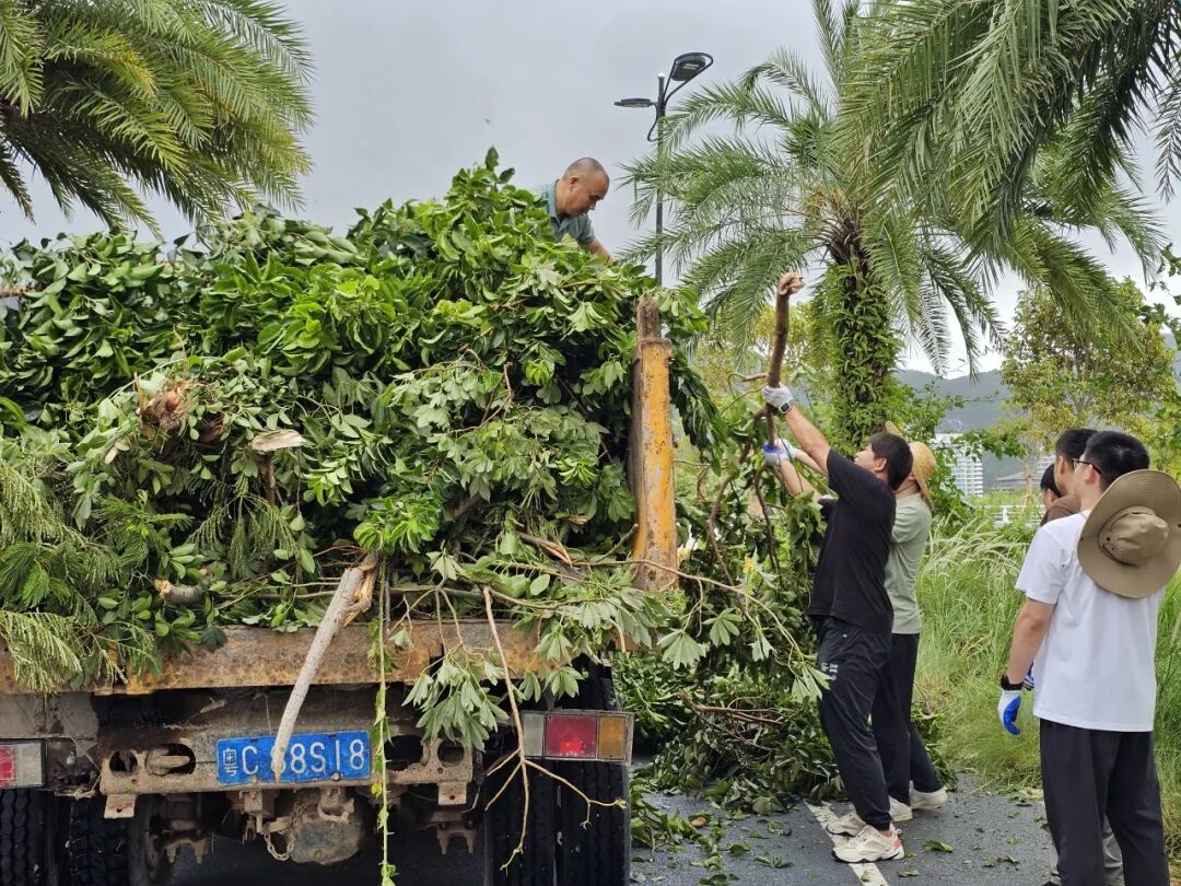 9月25日,珠光集團黨委嚴(yán)格落實“雙報到”機制,主動對接社區(qū)需求,迅速啟動集團黨員先鋒突擊隊中的13支小分隊前往拱北街道華僑社區(qū)及灣仔街道作物社區(qū)、富興社區(qū)、桂圓社區(qū)、灣仔社區(qū)等社區(qū)開展清理倒伏樹木的殘枝落葉、排查安全隱患等工作,保障車輛與行人安全通行。